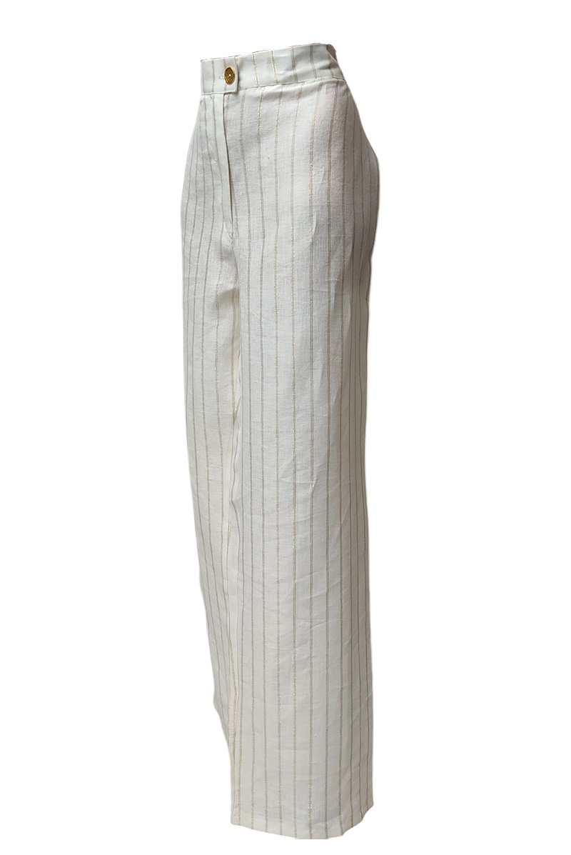 Παντελόνι από ύφασμα λινό ριγέ με φερμουάρ εμπρός.
