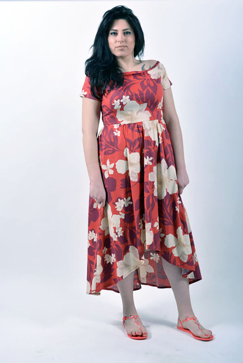 Φόρεμα  ελαστικό ασύμμετρο με floral αποχρώσεις.