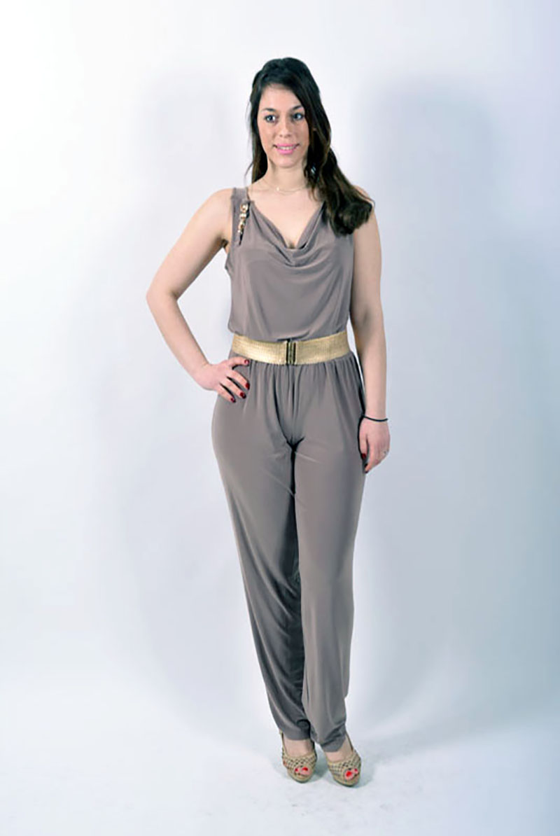 Φόρμα ολόσωμη από jersey ελαστικό με ζώνη χρυσή στην μέση.