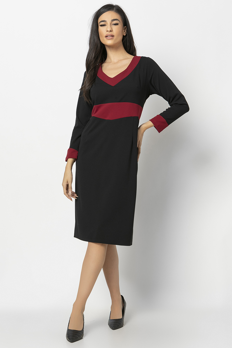 Φόρεμα από ύφασμα scuba ελαστικό μαύρο με μπορτώ λαιμουδιά και μπάσκα.