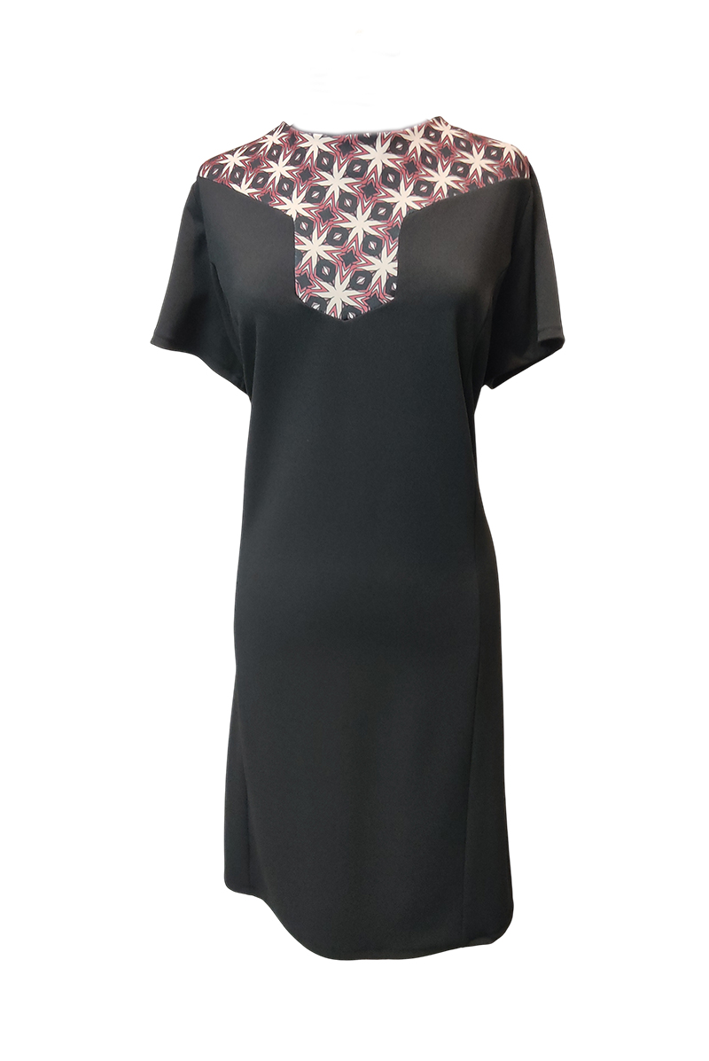 Φόρεμα από ύφασμα ελαστικό με ρόμβους στο ντεκολτέ.