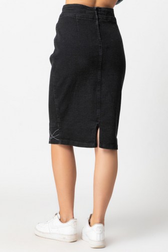 Φούστα από ύφασμα ελαστικό τζίν με γαζιά στον ποδόγυρο,φερμουάρ πίσω.