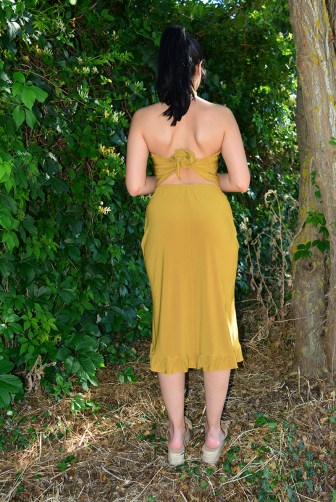 Φούστα από jersey ελαστικό ύφασμα με τσιμπίματα,λάστιχο στην μέση,βολάν στον ποδόγυρο.
