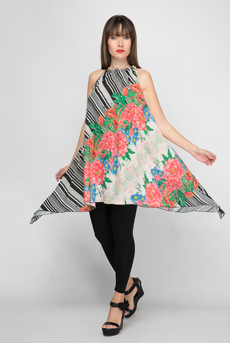 Μπλούζα από floral ύφασμα ασύμμετρη με δέσιμο κορδόνι στον λαιμό.