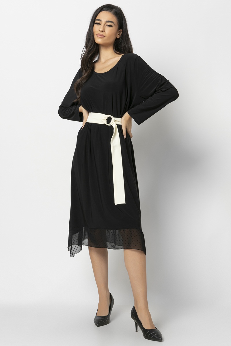 Φόρεμα από ύφασμα jersey ελαστικό με βολάν μουσελίνα πουά.