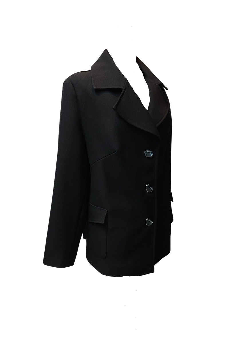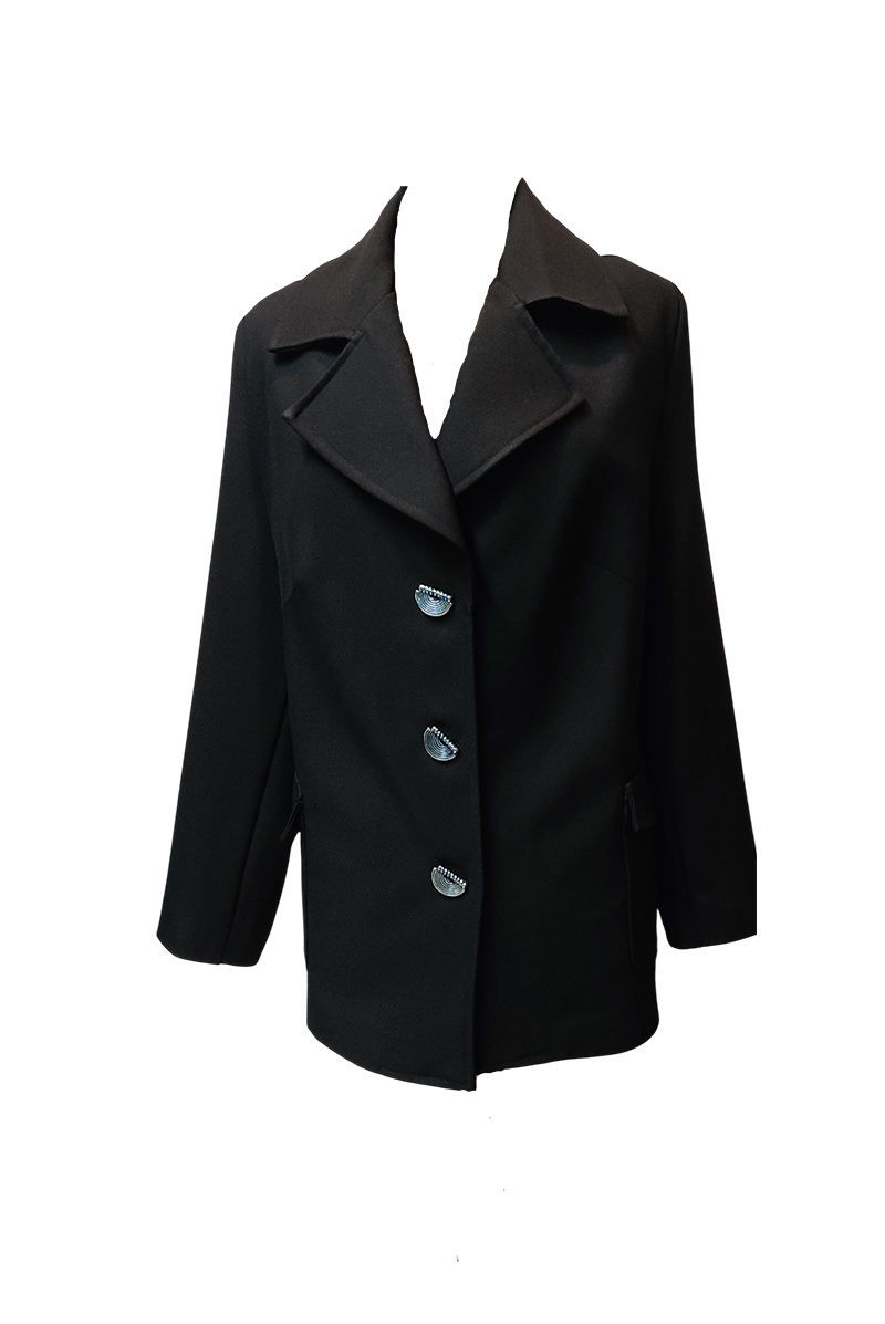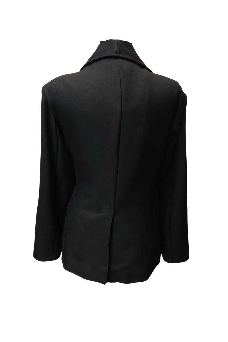 Σακάκι από ύφασμα κρέπ μαύρο με κουμπιά εμπρός και σχίσιμο πίσω,φόδρα εσωτερικά.